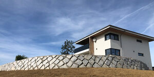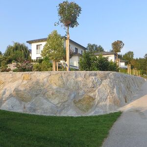 Kalkstein-, Granitsteinschlichtungen und Betonblockmauern für Hangsicherung, Aufschüttung und Gartengestaltung